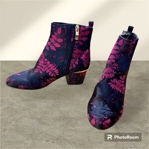 Liz Claiborne Floral Block Heel Gina Bootie size 5