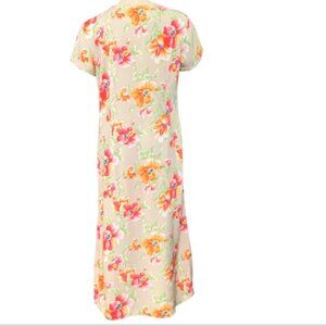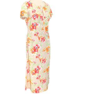 Description: Vintage 90s Y2K Lizwear Floral Petites Midi/Maxi Dress, Half-Button Front. 2 Front Pockets
