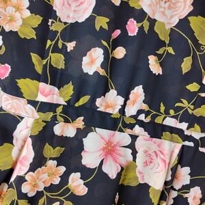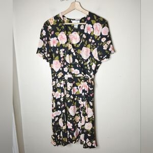 Liz Claiborne Floral Chiffon True Wrap Dress — Black/Pink — Size 10