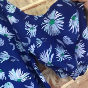 Royal blue background with flowers and leaves in white, green, light blue