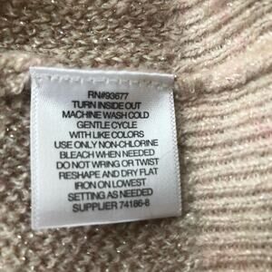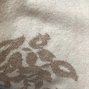 Features: crew neckline, long sleeve, metallic flowers woven into the fabric, cream with slight pink threading