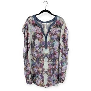 Liz Claiborne Floral Sheer Half Button Sleeveless Top Plus Size 2X Flowy Casual