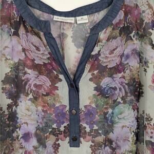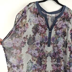 Liz Claiborne Floral Sheer Half Button Sleeveless Top Plus Size 2X Flowy Casual Feminine