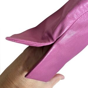 Liz Claiborne Genuine Leather Zip Up Jacket Collarless size 12 Pink