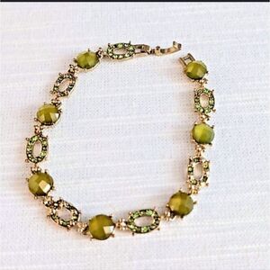 Liz Claiborne Gold Tone w/ Green Rhinestones Green Stones Bracelet 8"