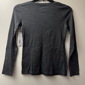 Discover the perfect blend of style and comfort with this fitted long sleeve tee from Liz Claiborne. Crafted in a soft gray hue, this top features a flattering V-neckline and a sleek silhouette. Ideal for layering or wearing on its own, it's a versatile addition to any wardrobe. Women’s XS new with tags.