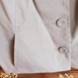 This Liz Claiborne swing jacket in gray offers style with practical features. Ideal for layering, it combines vintage design with functional details such as seam-hidden pockets.