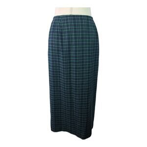 Liz Claiborne Elisabeth Green Blue Plaid Wool Blend Wrap Style Vintage Maxi Skirt Size Medium Maxi or Midi depending on your height