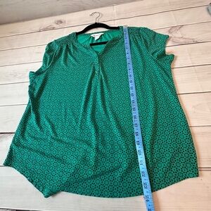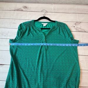 Liz Claiborne Green Flutter Sleeve Top Relaxed Fit Summer Office Church School