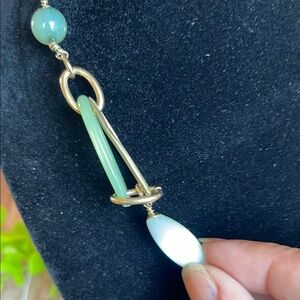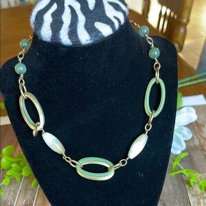 Liz Claiborne Green and Gold Necklace with Oval Links