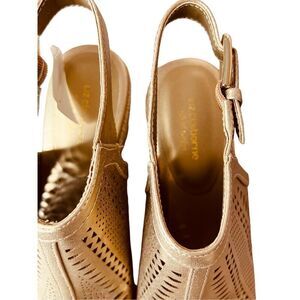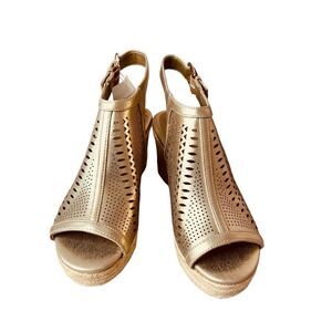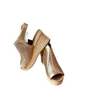 Liz Claiborne Hanalei Gold Laser Cutout Wedge Heel Espadrille Sandal Sz 7M NWT