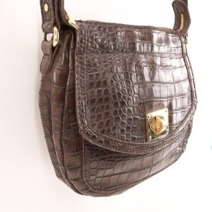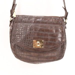Liz Claiborne Handbag Women Brown Leather Croc Faux Leather Shoulder Saddle Bag