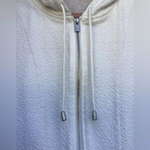 Liz Claiborne Hooded Textured Cotton Cardigan Sweatshirt Zip Up White - Small.