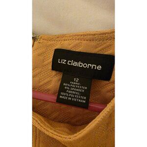 Liz Claiborne Houndstooth Embossed Dress Size 12 Mustard Yellow Office Preppy