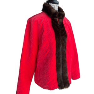 Womans Liz Claiborne Jacket with faux fur. Red. Size L # 1048