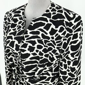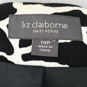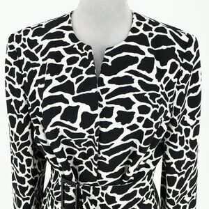Liz Claiborne Jacket Petites 14P Black White Animal Print Attached Belt Lined Career