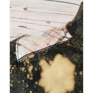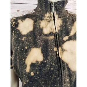 This top has been given new life with a custom frosted look using a reverse tie-dye method. Full zip and front pockets; It can be worn as a top or layer as an outer jacket; the designs are very unique including the appearance of flames on the back; Plaid inlaid on the top of shoulders;