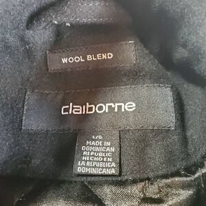 Liz Claiborne Jacket Womens Large Black Wool Blend Double Breasted Coat