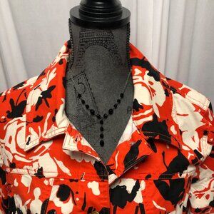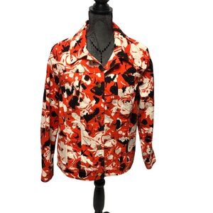 Liz Claiborne Jacket Womens Size 18W Orange Black Floral Button Up Long Sleeve
