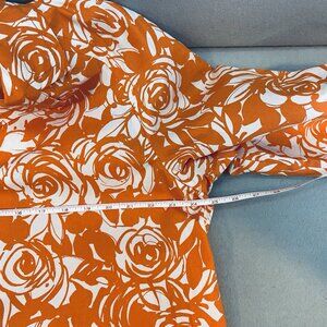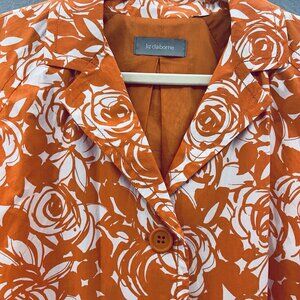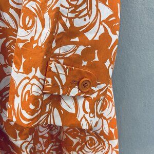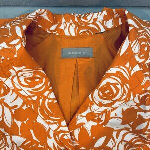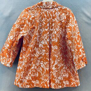 Liz Claiborne Jacket Women's Size 1X Orange/White Rose Swirl Print Short Trench
