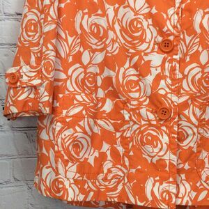 Liz Claiborne Jacket Women's Size M Orange/White Rose Swirl Print Button Pockets
