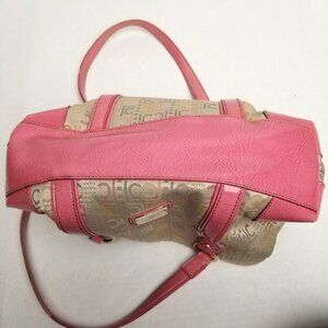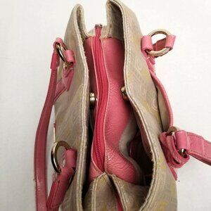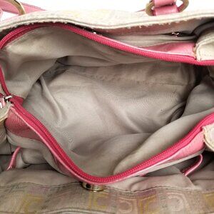 Liz Claiborne Jacquard Logo Handbag Purse Satchel Pink Beige Canvas Vintage