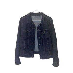Liz Claiborne Jean Jacket Womens Size Large Blue Long Sleeve Button Up Dark Wash