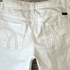 Liz Claiborne Denim Boyfriend Fit Straight Mid Rise Crop Folded Cuff White Jeans