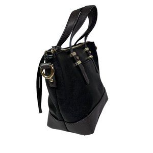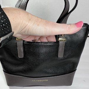 Liz Claiborne Kelsey Handbag Purse Mini Tote 7.5" Black & Grey Vegan Leather