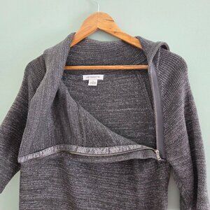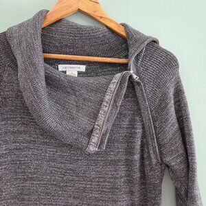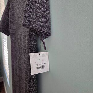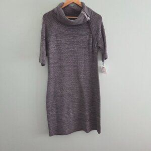 NEW WITH TAGS LIZ CLAIBORN SWEATER DRESS. IT IS A BEAUTIFUL CHARCOAL GREY WITH SILVER THREAD RUNNING THROUGHOUT. HAS SHORT SLEEVES AND AN INTERESTING COLLAR THAT IS A TURTLENECK WITH ZIPPER DETAIL. PERFECT FOR SPRING OR FALL WEATHER. GREAT FOR WORK AND CAN DRESS UP FR A NIGHT OUT. CAN ALSO BE CASUAL IF PAIRED WITH BOOTS OR SNEAKERS.