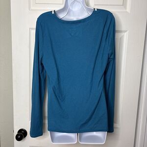 Liz Claiborne LG Teal Long Sleeve Pajama Top Satin Trim Button Front PL Petite L