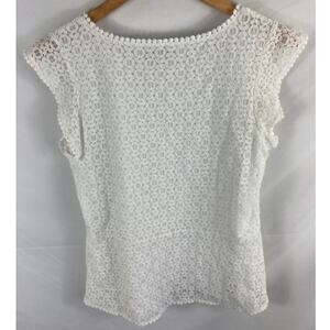 Liz Claiborne Lace Detail Cap Sleeve Blouse White Size Small