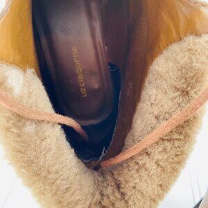 Elevate your style with these Liz Claiborne lace-up boots, featuring luxurious wool lining and durable brown leather. Perfect for a cozy, fashionable look in cooler weather.