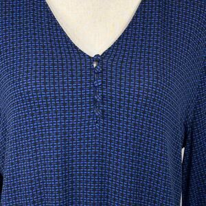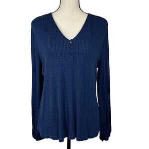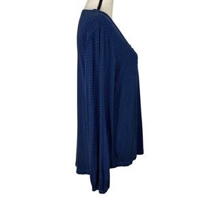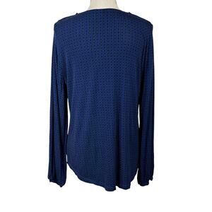 Liz Claiborne Large Top Abstract Long Balloon Sleeves V-Neck Stretch Hi-Low Hem