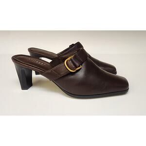 Liz Claiborne Larkin Brown Leather Upper Mule Sandals Size 9.5M