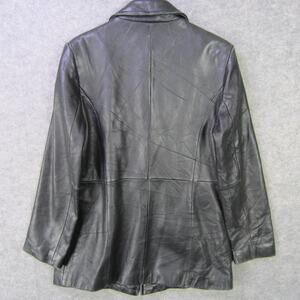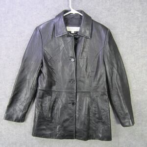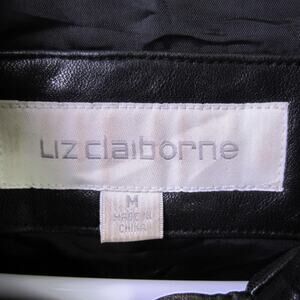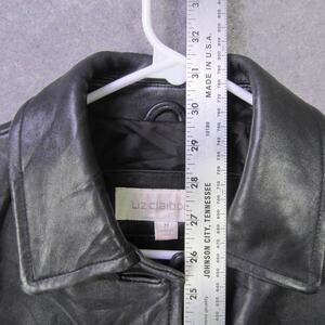 Liz Claiborne Leather Jacket Womens Medium Black Button Front Collared Pockets