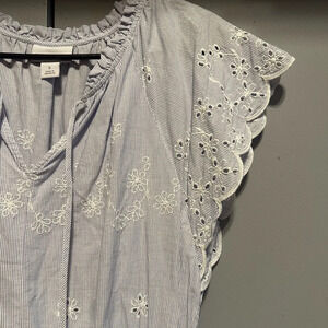 ❤️Liz Claiborne - Light Blue Striped Floral Embroidered Skirt (Size Medium)