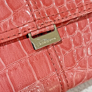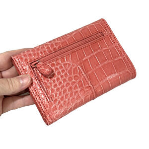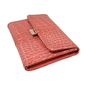 Liz Claiborne Light Pink Wallet - a pretty Mock Croc textured Trifold design with front Snap closure on the Flap. A stylish fashion statement that holds all your essentials. In excellent pre-owned condition - minor overall wear - no damage or flaws - so cute!