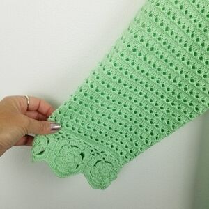 Liz Claiborne Lime Green Crochet Knit Open Front Sweater