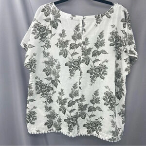 Liz Claiborne Linen Blend Short Sleeve Floral Print Boxy Raw Hem Top Size Large