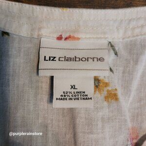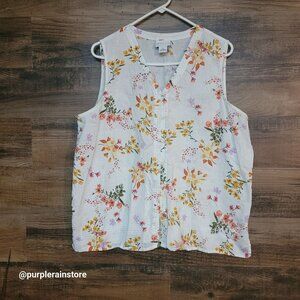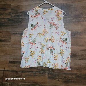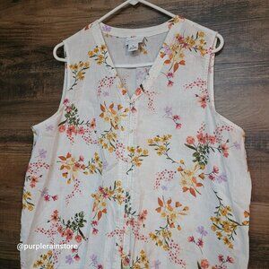 Liz Claiborne Linen Cotton Floral Tank Top Size XL Button Front V Neck Country