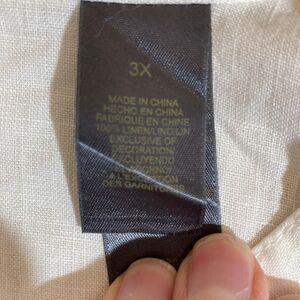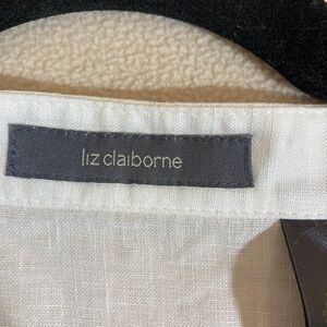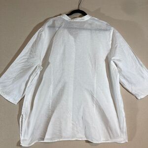 Liz Claiborne Linen Top 3X White Embroidery Button Up 3/4 Sleeve Country Coastal