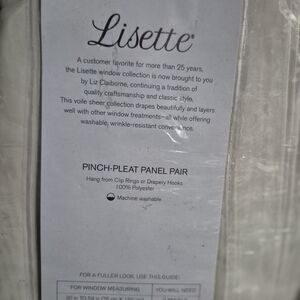 New in package- PAIR of Elegant Liz Claiborne voile sheer panels. Beautiful drape and style. Machine washable for easy care.