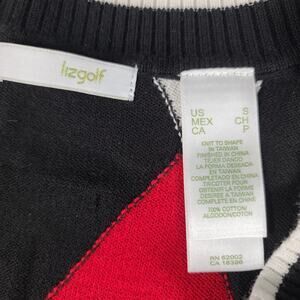 Liz Claiborne Liz Golf Black Gray Red White Argyle V Neck Vintage Sweater Small