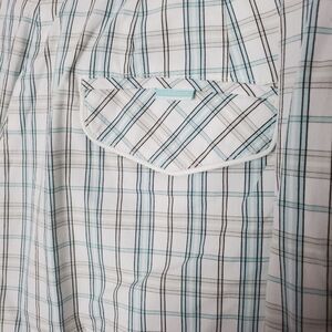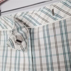 Beautiful Liz Golf collection Capri Pants. White Blue Gray and black plaid type print. Front pockets, hook closure waist. slight stretch.
