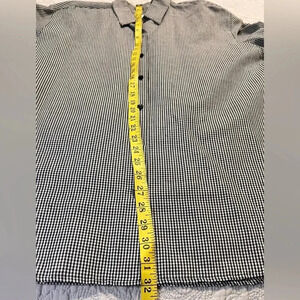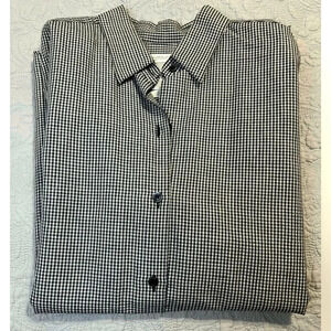 This Liz Claiborne (Liz Sport) Large Women’s black and white checkered long sleeve button up shirt has never been worn. It’s is made of 54% Linen, 46% Cotton. Machine washable. Smoke free home.
