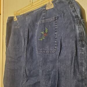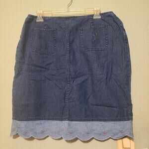 Liz Claiborne Liz Wear Petite Cotton Denim Floral Embroidered Skirt Women's 16 P