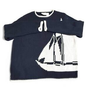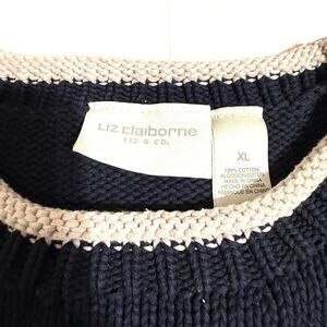 Liz Claiborne Liz & Co XL Sweater 100% Cotton Navy Nautical Sailboat Knit Pullover