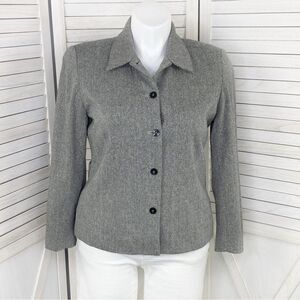 Liz Claiborne LizSport Herringbone Tweed Button Front Blazer Black White 14P