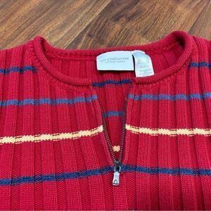Liz Claiborne LizWear Jeans Vintage red stripe Quarterzip sweater